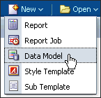 | 1 . | Click New>>Report in the global header. You will be asked to select the data source for the new report. Select the Use Existing Data Model option. You will use the Salary Report Parameters data model that you have created previously. |