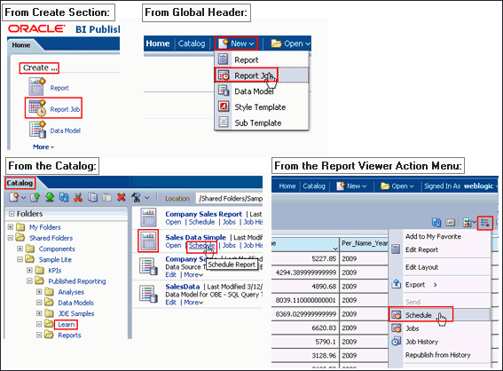 | 1 . | You can schedule a Report Job in any of the following ways: